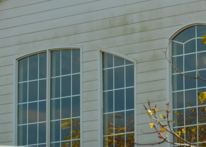 Eight year old, million-dollar (original price) house in Kingsport with mold/algae on exterior wall because of condensation caused by poor insulation.