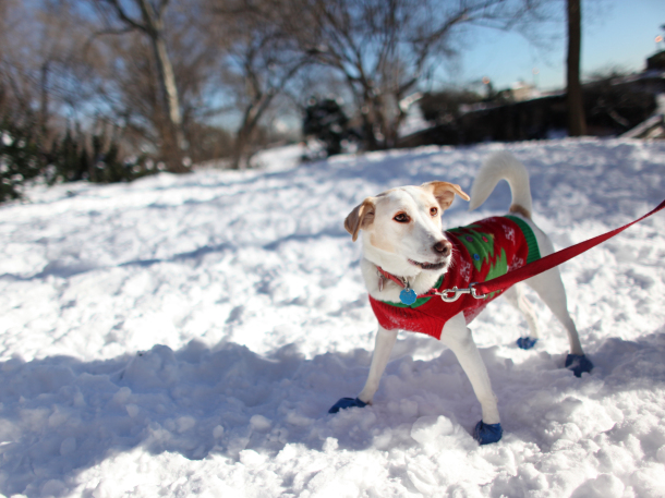 Kyona, a rescue dog from Japan, contemplates the snow in Carl Shurz Park on Jan. 4, 2014, after a storm dropped up to 7 inches of snow in New York City.